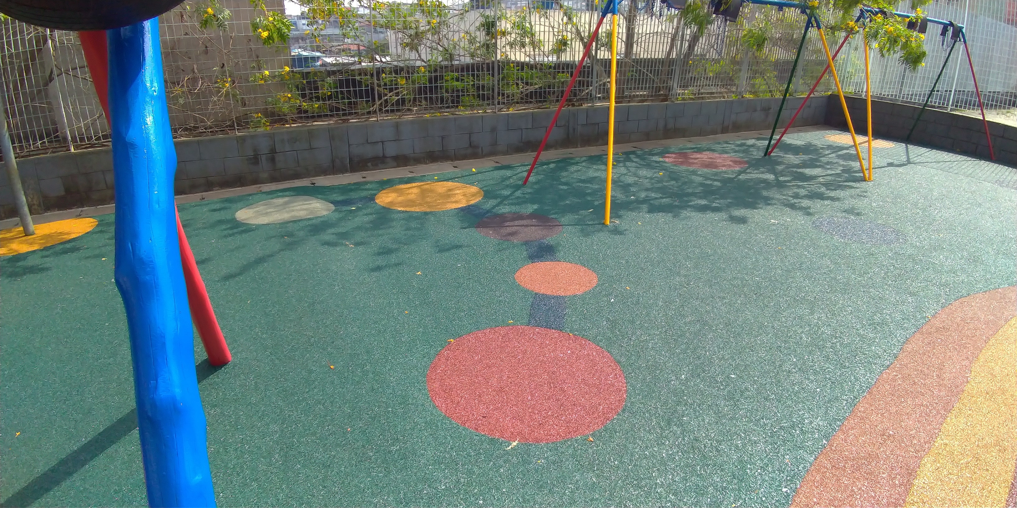 O piso MSSD é a melhor opção em pisos para playgrounds, academias, áreas externas, quadras esportivas e jardins.